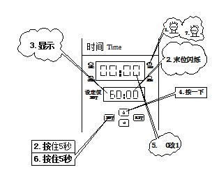 b、修改后再按一下“SET”后松手,確認修改。1分鐘后,選定的計時單位指示燈應亮。表示修改完成。
