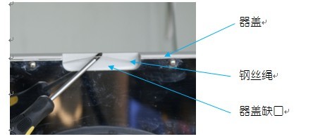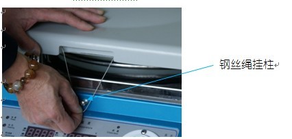 1)到達開蓋的溫度后,用左手扶壓住機蓋,右手手指拉出器蓋正前方缺口內的鋼絲繩。(見圖一)