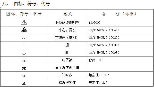 設備標記,要求用戶操作時嚴格按文字內容和說明書的相關內容執行。