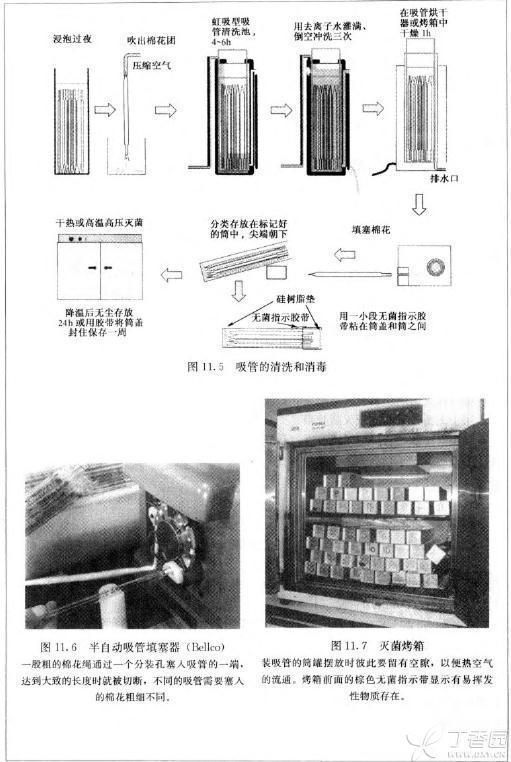5. 干熱滅菌,160°C 1 h。要盡可能少用膠帶,或換用溫度指示標(biāo)簽(Alpha Medical;Bennnet),此標(biāo)簽很小并不含爆炸性物質(zhì)。要在烤箱的中心檢測(cè)溫度,以保證這個(gè)**難到達(dá)的部位也能滿(mǎn)足**低的滅菌條件。要保證烤箱 中的罐子之間有一定的空隙,這樣可以使熱空氣流通(圖 11.7)。