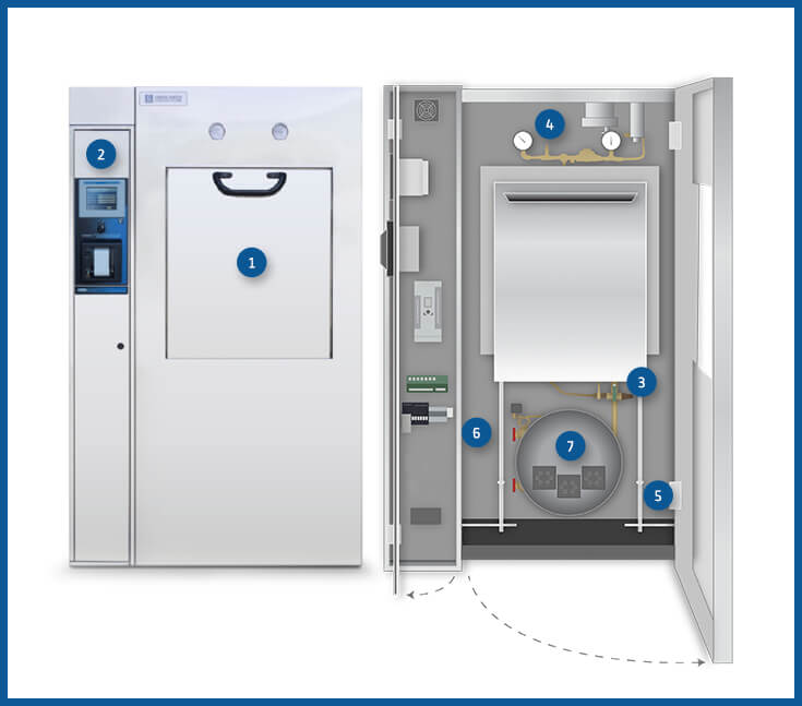 典型的實驗室和醫院高壓滅菌器由以下關鍵組件構成。